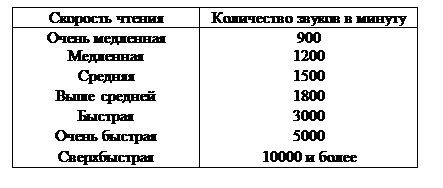 В определении того, что считать быстрым, а что медленным чтением, мы исходим из шкалы скоростей, приведенной в табл. 1.