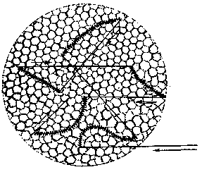 Существует три вида микродвижений глаз: дрейф (волнистые линии) — от центра; быстрые скачки (прямые отрезки) — обратно к центру.; высокочастотный тремор, накладывающийся на основной дрейф. Амплитуда всех этих движений очень мала. Диаметр изображенного на рисунке участка центральной ямки сетчатки глаза составляет всего лишь 0,05 мм. Из этого следует важный вывод, имеющий существенное значение для совершенствования техники чтения: различие между человеком, читающим быстро, и человеком, читающим медленно, заключается не в скорости движения их глаз, а в количестве материала, который воспринимает читающий в момент фиксации.