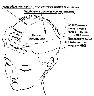 На рис. 35 показана морфологическая структура памяти. Практически все части коры больших полушарий мозга принимают участие в процессах памяти. Обращаем ваше внимание на значительную роль в процессах памяти подсознательной деятельности мозга. На рис. 36 показан условный алгоритм памяти, т. е. последовательность процессов, обеспечивающих процедуру запоминания.
