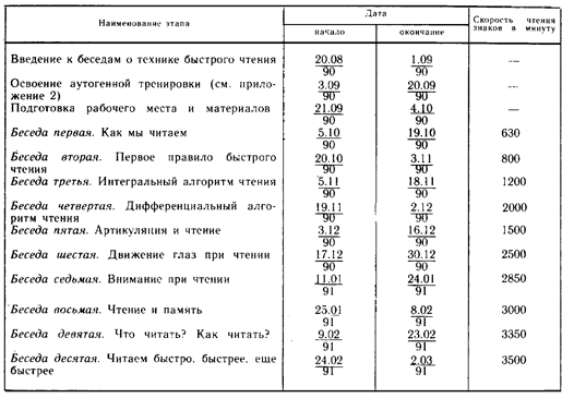 Приложение 1. Примерный план освоения техники быстрого чтения