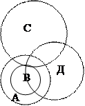 Соподчинение: А – следователь, В – прокурор, С – участковый милиционер, Д – работники правоохранительных органов. Противоположность: А – истина, В – ложь. Противоречие: А – черный, В – не-черный (синий, красный)