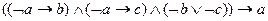 . Алгоритм распределения значений И и Л для переменных (в частности, трех: а, в, с) может быть, напр., таким: в столбце для а сначала пишем 4 раза «истина» «(И)» и 4 раза «ложь» «(Л)»; в столбце для в сначала пишем 2 раза «И» и 2 раза «Л», затем повторяем и т. д.