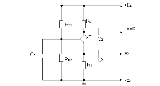 Использование базового делителя Rб1 и Rб2 позволяет обойтись одним источником питания.