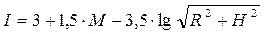 1. Рассчитать интенсивность землетрясения (I, баллов), по формуле: