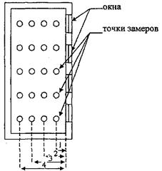 1.1. Наметить точки замера освещенности в помещении (см. рис. 4.3). Схему следует нарисовать в тетради.