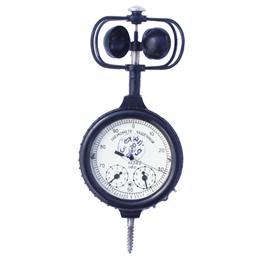 Чашечный анемометр – метеорологический прибор для измерения скорости ветра. Состоит из чашечной вертушки (1), укреплённой на оси, которая соединена с измерительным механизмом (2). При возникновении воздушного потока, ветер толкает чашечки, которые начинают крутиться вокруг оси. Анемометр замеряет число оборотов чашечек вокруг оси за заданное время и отображает его на циферблате (4), что равно определённому расстоянию, после чего рассчитывается средняя скорость ветра.
