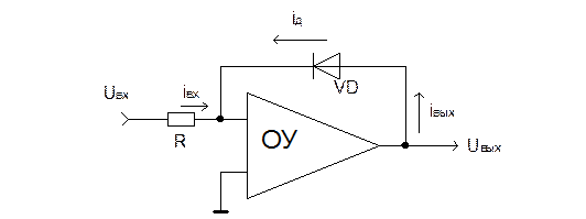 Uвых = jTln(-Uвх/I0R) - если Uвх < 0.