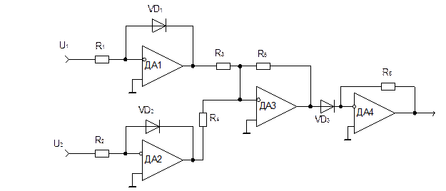 Uвых = R*U1*U2 = k*eln(U1*U2) = k*exp(lnU1 + lnU2)