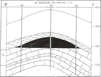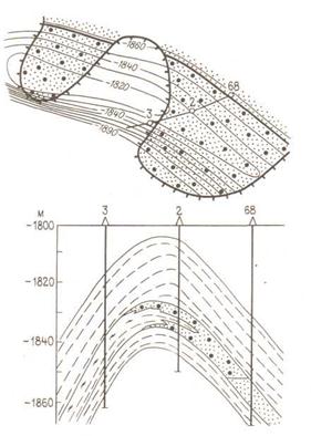 На рисунках 19, 20, 21, 22 и 23 приведены примеры месторождений с различными типами залежей.