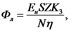 где Фл - световой поток одного светильника, лм; Ен - нормированная освещенность, лк; S -площадь помещения, м2; Z = 1,15 - коэффициент, учитывающий отношение средней освещенности к минимальной, при освещении линиями люминесцентных светильников Z = 1,1; К3 - коэффициент запаса, принимаемый в зависимости от загрязненности воздуха в помещении; N -число светильников; h - коэффициент использования светового потока.