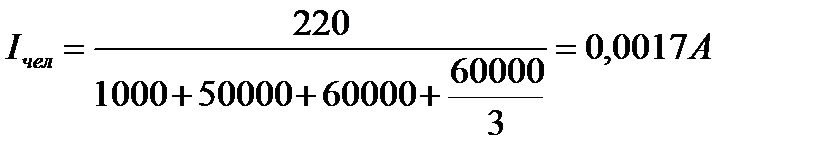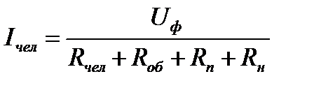 Rп – сопротивление пола, на котором стоит человек, Ом;