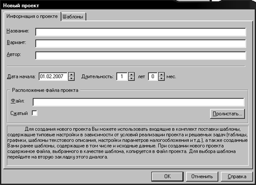 После запуска программы Project Expert в меню «Проект» следует выбрать пункт «Новый» (см. рис.1).