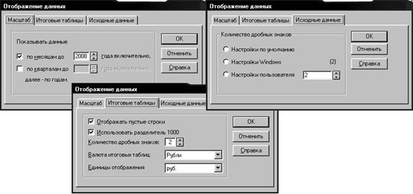 Проект-Отображение данных. Данный модуль представлен в виде диалогового окна с тремя закладками. Для удобства все три закладки одновременно показаны на рис. 6.