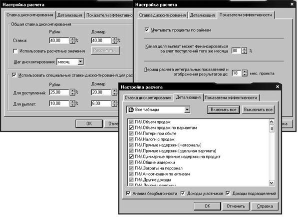 Проект-Настройка Расчетов. Все три закладки диалогового окна данного модуля представлены на рис. 7.