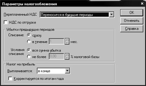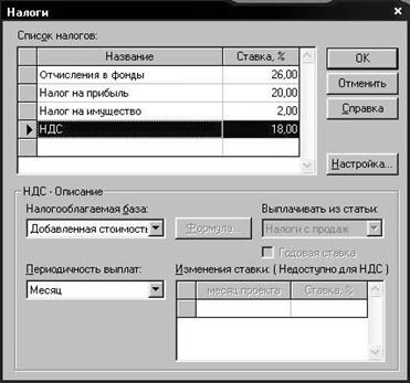 Налоги на добавленную стоимость и на прибыль требуют дополнительной настройки, которая осуществляется после нажатия кнопки «Настройка…» и вызова окна, изображенного на рис. 13.