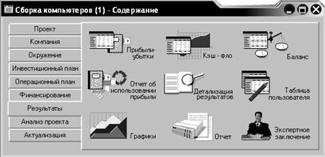 Основные результаты, которые могут быть достигнуты при реализации разработанных планов, доступны для просмотра через группу модулей «Результаты» (см. рис. 37). Прежде чем обращаться к модулям этой группы необходимо запустить процедуру расчета основных показателей, нажав клавишу «F9» или соответствующую кнопку (на ней изображен калькулятор) на главной панели инструментов программы Project Expert.