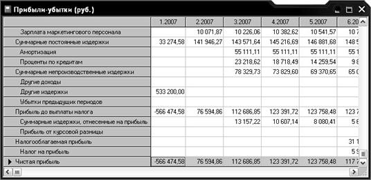Результаты – Прибыли и убытки. При вызове этого модуля отображается прогнозный отчет о прибылях и убытках (см. рис. 38).