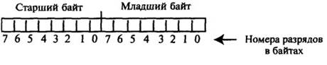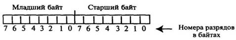 При записи слова младший байт размещается по адресу, который является адресом машинного слова, старший байт машинного слова размещается в следующем по порядку байте ОП, имеющем номер, увеличенный на 1 (здесь действует мнемоническое правило “младший байт - по младшему адресу”).