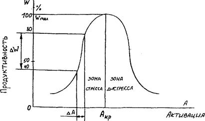 (W - величина производительности; А - величина активации; DW - диапазон нормальной производительности (продуктивности); DА - диапазон (зона) оптимальной активности; А - критическое (предельное) значение активации).