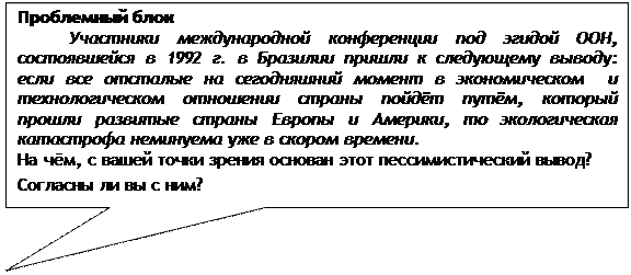 5. Обострение противоречий интересов человечества с региональными интересами индустриально развитых стран и стран «развивающихся», возможностей биосферы Земли и растущих потребностей её жителей и др.