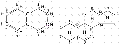 - субстрактивная номенклатура указывает на удаление отдельных атомов или групп, которые обозначаются субстрактивными префиксами в имеющихся систематических или тривиальных названиях, например, 6,7 – ди гидроциклопентанпергидрофенантрен (2);