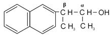 - конъюнктивная (объединительная) номенклатура применяется в тех случаях, когда старшая группа связана с ациклическим компонентом, который в свою очередь непосредственно соединен углерод-углеродной связью с циклическим компонентом. Углеродные атомы боковой цепи, которая ограничена старшей группой, обозначают греческими буквами, начиная от старшей группы по направлению к циклическому компоненту. Все другие звенья цепи рассматриваются как заместители и обозначаются префиксами перед названием циклического компонента, например, α, ß-диметил-2-нафталинэтанол (3).