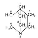 В шестичленных азотсодержащих циклах называют префикс элемента «аз» и корень цикла «-ин» (22).
