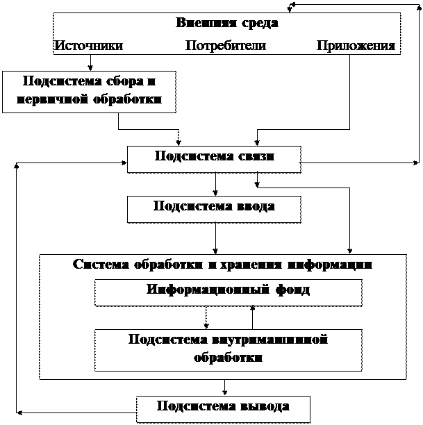Кроме того, функциональная структура определяет способы реализации отдельных информационных процедур и информационного процесса в целом. В данном контексте в составе ИС можно выделить подсистемы: сбора и первичной обработки, ввода и кодирования, хранения и обработки, передачи информации.