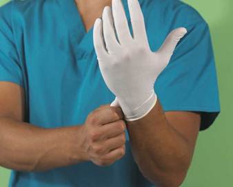 | 1.Перчатки необходимо надевать во всех случаях, когда возможен контакт с кровью или другими биологическими субстратами, потенциально или явно контаминированными микроорганизмами, слизистыми оболочками, поврежденной кожей. 2. Не допускается использование одной и той же пары перчаток при контакте (для ухода) с двумя и более пациентами, при переходе от одного пациента к другому или от контаминированного микроорганизмами участка тела - к чистому. После снятия перчаток проводят гигиеническую обработку рук. |