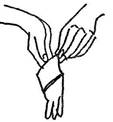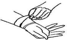 | Взять перчатку для левой руки вторым, третьим и четвертым пальцами правой руки (в перчатке) за отворот так, чтобы пальцы не касались внутренней поверхности перчатки; | Обеспечение стерильности |