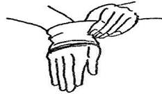 | Сомкнуть пальцы левой руки и ввести их в перчатку; Расправить отвороты на левой, затем правой перчатках, натянув их на рукав. | Обеспечение стерильности |