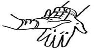 | 4. Надеть перчатку, не нарушая ее отворота, разомкнув пальцы правой руки; | Обеспечение стерильности |