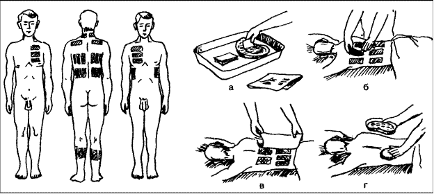 | Показания: 1. Воспалительные заболевания верхних дыхательных путей (ринит, фарингит), бронхит 2. Боли в области сердца 3. Повышение артериального давления Головные боли (на область затылка) | Противопоказания: 1. Заболевания кожи (гнойничковые и аллергические высыпания, нарушения чувствительности кожи) 2. Высокая лихорадка (выше 38°С) 3. Легочное кровотечение 4. Злокачественные новообразования |
