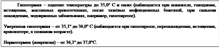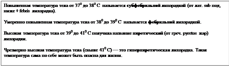 ![]() | Гектическая (истощающая, септическая, febris hectica) – колебания температуры тела в течение суток составляют 3-5° С (наблюдается при сепсисе, генерализованных вирусных инфекциях; нагноительных заболеваниях, тяжёлом туберкулёзе лёгких). |