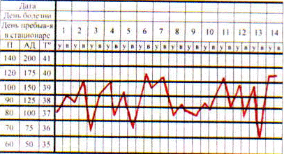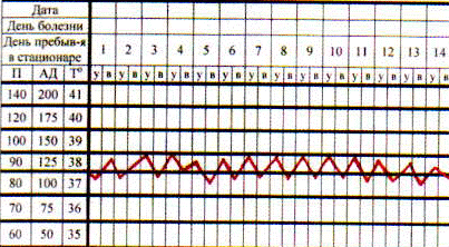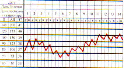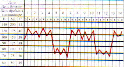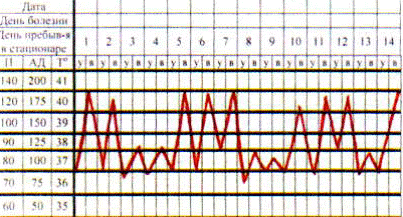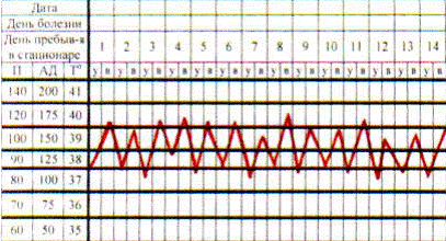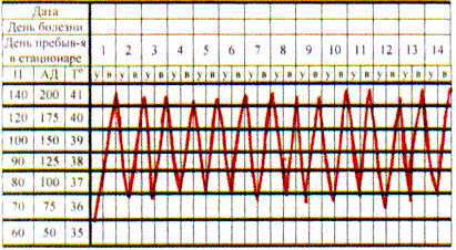 ![]() | Неправильная лихорадка. Отсутствует определенная закономерность в суточных колебаниях температуры |