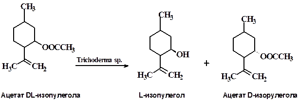 Расщепление рацемических соединений на оптические антиподы широко используется в промышленности для получения стереоизомеров. Эти процессы основаны на стереоспецифичности ферментов, например ацилаз. Ацилазы используют для разделения смесей DL-аминокислот, которые вначале ацилируют, а ацильные производные подвергают гидролизу с помощью этих ферментов, получая L-аминокислоты. Аналогичным путем происходит разделение некоторых терпенов, например dl-изопулегола: