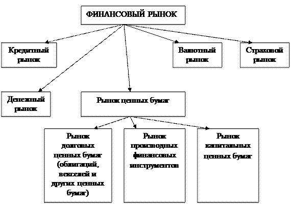 2. Структуру финансового рынка по основным группам финансовых активов можно представить следующим образом: