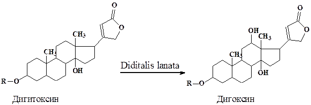 Биотрансформация стероидов с использованием культур растительных клеток имеет целый ряд преимуществ перед микробиологической трансформацией. Так, если трансформация в положения 3 и 5 характерна практически для всех используемых культур (микроорганизмы, растительные клетки), то реакции Iβ-, 4β-, I2β- (дигитоксин в дигоксин), 16β-гидроксилирования и изомеризации 17β-лактонного кольца, осуществляются только некоторыми культурами растительных клеток, и сильно, зависят от происхождения ткани и условий трансформации.