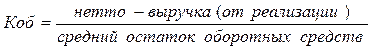 Данный коэффициент показывает, сколько раз в течение периода затраты предприятия на формирование оборотного капитала находят свое возмещение в виде выручки от реализации.