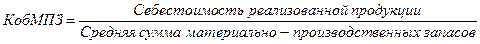3. Коэффициент оборачиваемости материально-производственных запасов: