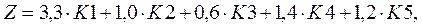 где показатели К1, К2, К3, К4, К5 определяются по следующим формулам: