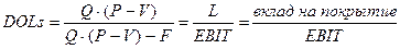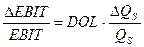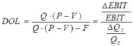 Уровень операционного левериджа (DOL) определяется как частное от деления относительного изменения валового дохода (EBIT) при изменениях в объеме продаж, на относительное изменение объема продаж по следующим формулам: