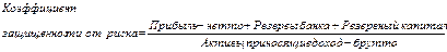 Оценивать качество активов с точки рения риска можно с помощью метода коэффициентного анализа. Коэффициент защищенности от риска характеризует предельную долю просроченной задолженности в активах, приносящих доход, которую банк может покрыть за счет чистой прибыли и резервов, и рассчитывается по формуле: