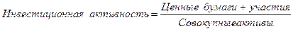 Показатель инвестиционной активности банка характеризует политику банка в области инвестирования средств в ценные бумаги и управления предприятиями и рассчитывается: