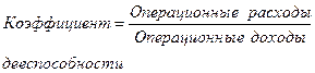 Рекомендуемое значение этого коэффициента не должно превышать 0,95, то есть доля операционных расходов в операционных доходах должна быть не более 95 %.