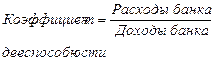 Полнее проанализировать доходы и расходы дает применение коэффициента дееспособности, который является прогнозным инструментом для оценки финансовой стабильности банка. Для жизнеспособности банка необходимо, чтобы расходы от операций и инвестиций покрывались за счет доходов от всех операций: