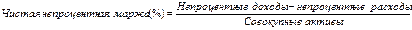 При расчете чистой процентной маржи и непроцентной маржи в некоторых методиках в качестве знаменателя предпочитают использовать доходные активы, объясняя это тем, что чистая процентная прибыль и чистая непроцентная прибыль должны сравниваться не со всеми активами банка, а с той лишь их частью, которая является главным источником совокупной прибыли банка. Чистая процентная маржа определяет размер спрэда (разницы) между доходами и расходами по процентам, который был получен путем тщательного контроля за доходными активами банка и поиска наиболее дешевых источников средств. Оптимальным значением данного показателя считается 4,5 %. Снижение процентной маржи сигнализирует об угрозе банкротства. Основными причинами уменьшения процентной маржи является снижение процентных ставок по кредитным операциям, удорожание ресурсов, уменьшение удельного веса доходных активов в общем их объеме.