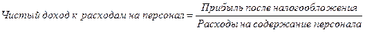 Более универсальным считается коэффициент, который характеризует чистый доход на одного сотрудника, что дает возможность сравнивать уровни эффективности деятельности персонала различных банков. Он демонстрирует чистый эффект от решений по мотивации труда персонала, независимо от того, направлены эти решения на низкую квалификацию и низкую заработную плату или на высокие расходы на высококвалифицированных сотрудников: