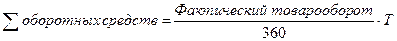 Экономическим эффектом ускорения (или замедления) товарооборачиваемости является относительное высвобождение из оборота средств (или дополнительное вовлечение в него). Чтобы определить сумму оборотных средств, высвободившихся вследствие ускорения товарооборачиваемости, необходимо число дней ускорения умножить на фактический объем товарооборота и разделить на 360 (однодневный товарооборот). Сумма оборотных средств, высвободившихся вследствие ускорения товарооборачиваемости, исчисляется по формуле 4.11.3: