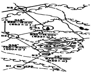 определение магнитных азимутов направлений и расстояний между выбранными ориентирами;